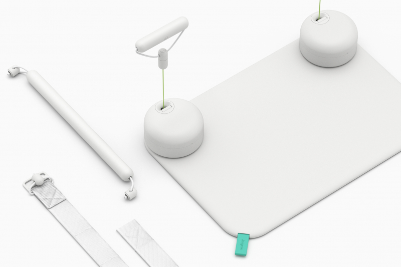 一般的な筋力トレーニングマシンとは異なり、ワイヤーによる一定張力設計を採用。