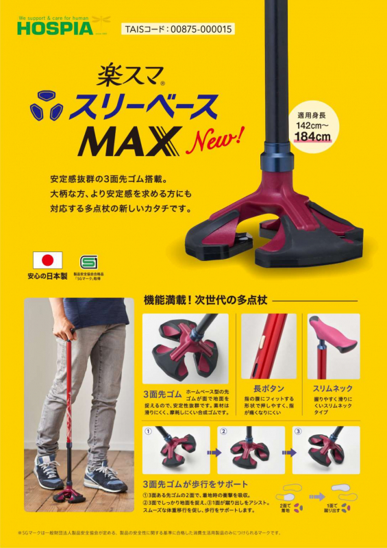 大柄な方やスリーベースよりも安定感を求める方に対応するスリーベースマックス。