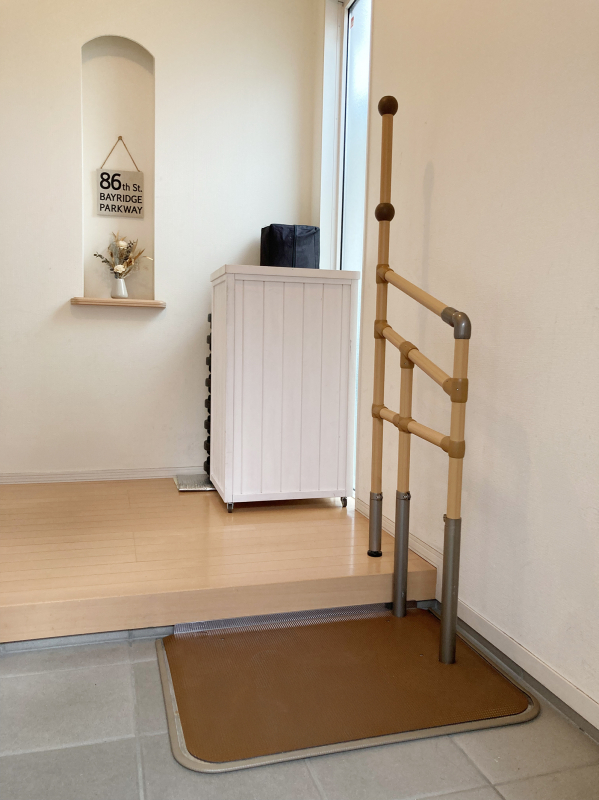 工事不要で、段差20cm までの玄関に設置できます。軽量なので持ち運びもしやすいです。