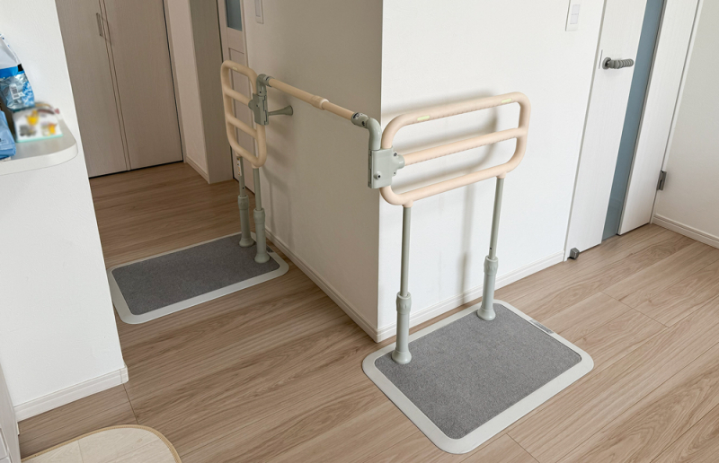 これにより狭い廊下にも両手すりも構築できるので、片麻痺の方でも安全に移動することができます。