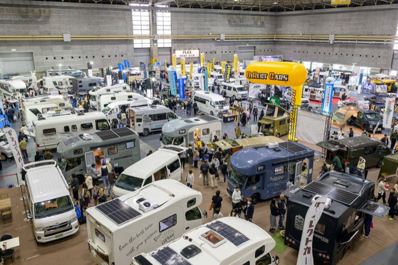 キャンピングカーの展示イベント「大阪キャンピングカーショー」は、各メーカーが総力を挙げて製造する最新モデルがずらりと並び、加えてアウトドア好き著名人が登壇するステージなど体験型イベントを多数実施しています。